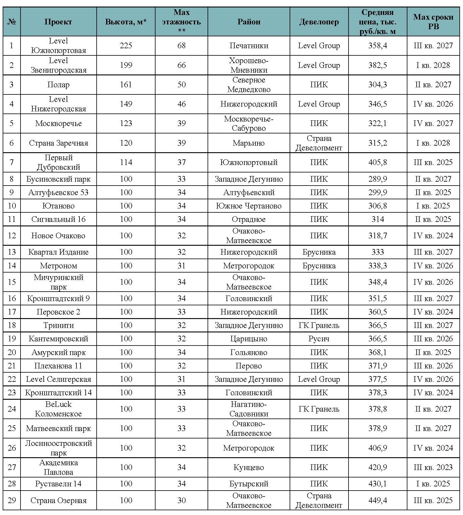 Самые высокие новостройки комфорт-класса в Москве в 2024 году